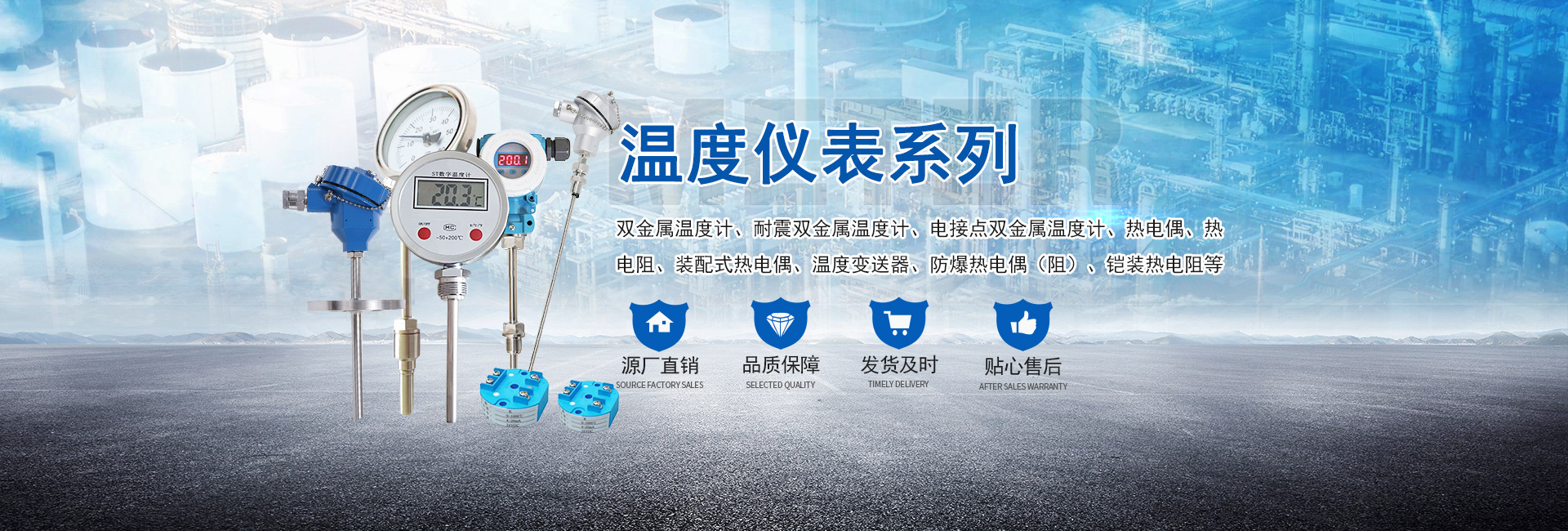 主營產(chǎn)品:壓力表、熱電阻、熱電偶、壓力變送器、溫度變送器、雙金屬溫度計、磁翻板液位計等